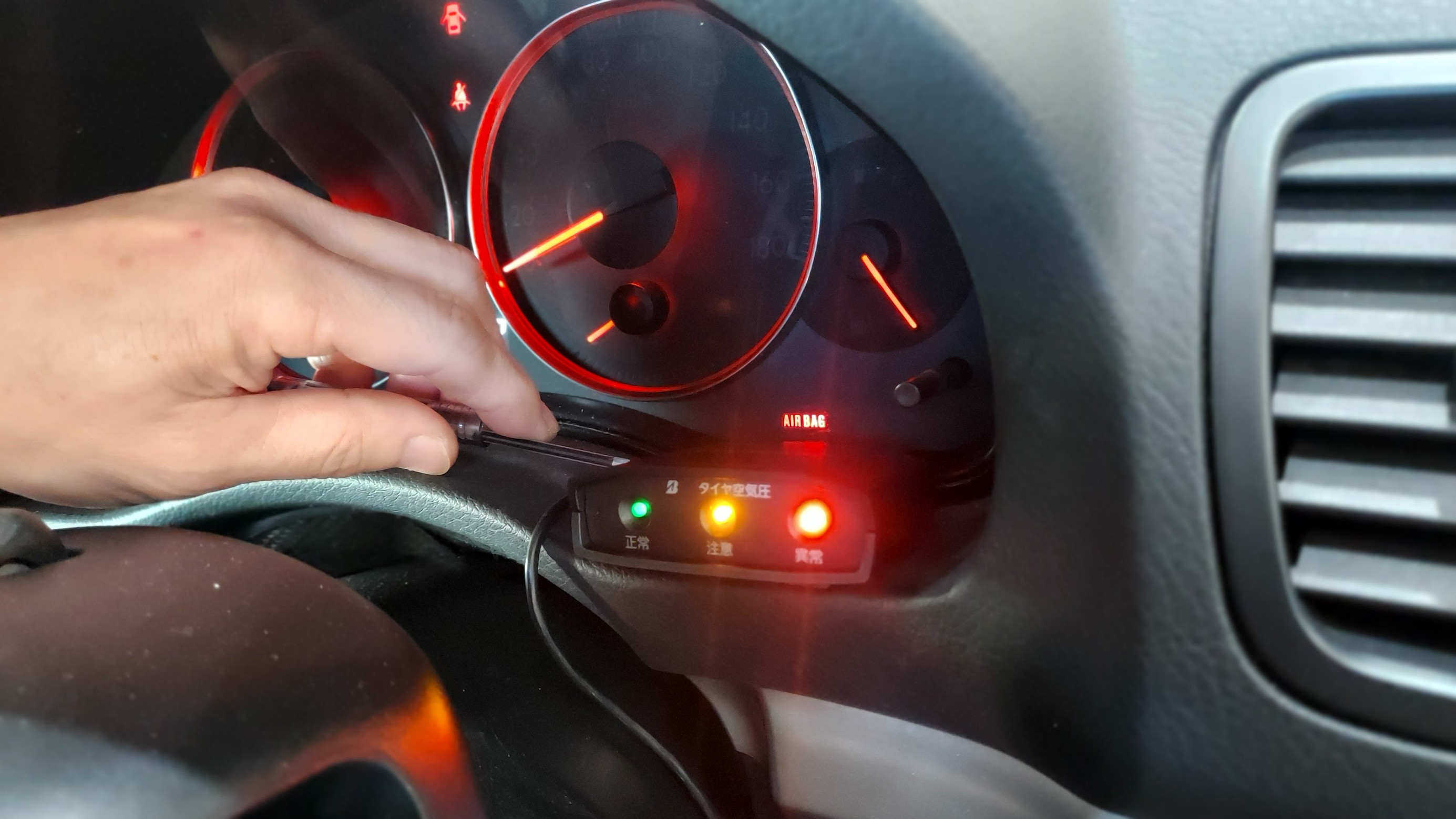 パンクの疑いがあると色が変わってお知らせをしてくれる