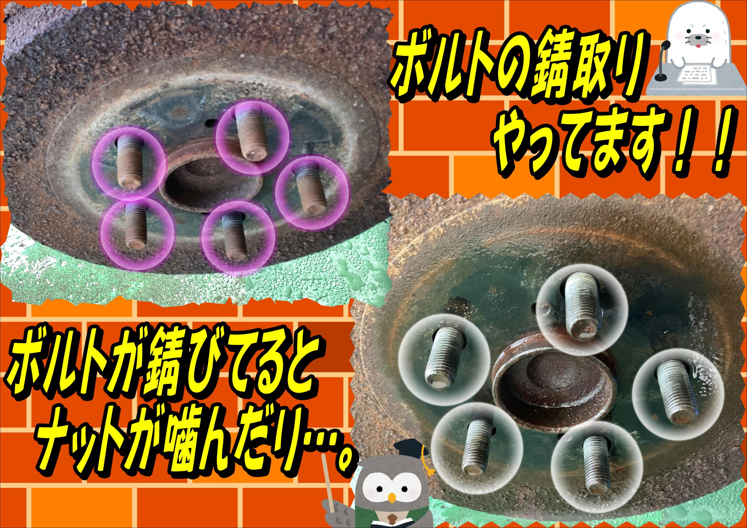 ハブボルト清掃やってます!
