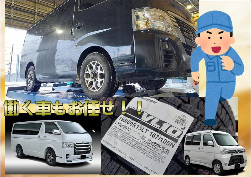 働く車のタイヤ交換販売も