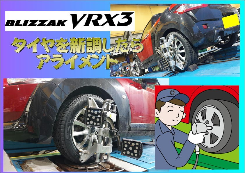 また、タイヤを新調+タイヤの角度調整(アライメント)を