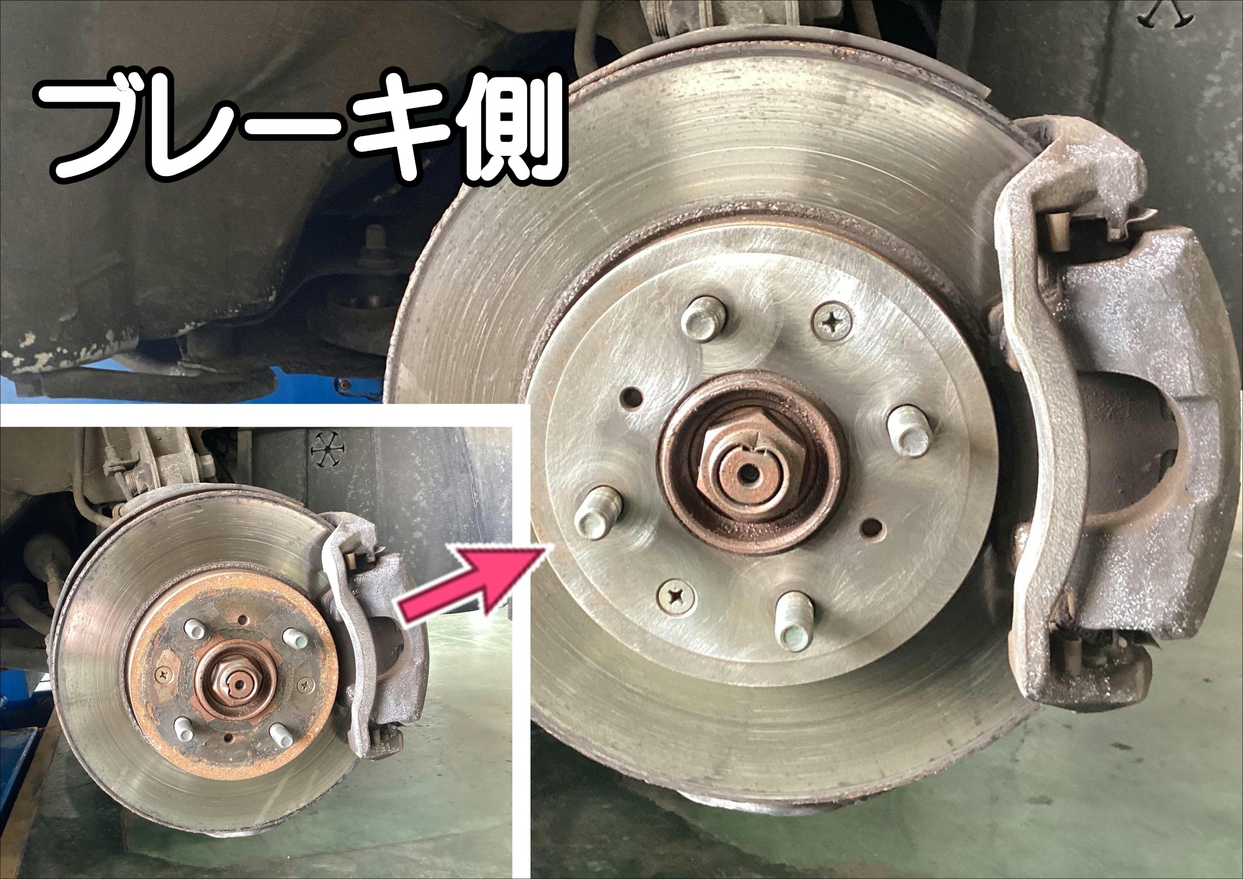 ホイールと接触するブレーキ面が錆びていると「面」でホイールが当たらない為「緩みやすい」