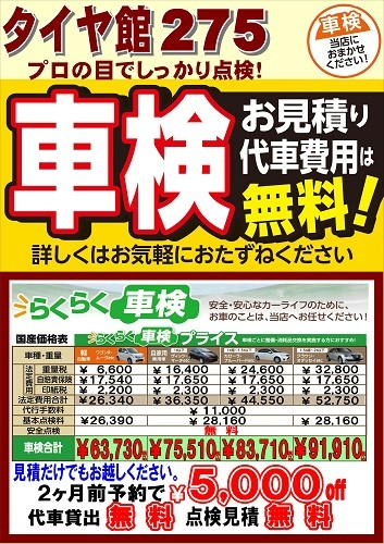 車検をタイヤ館275店で