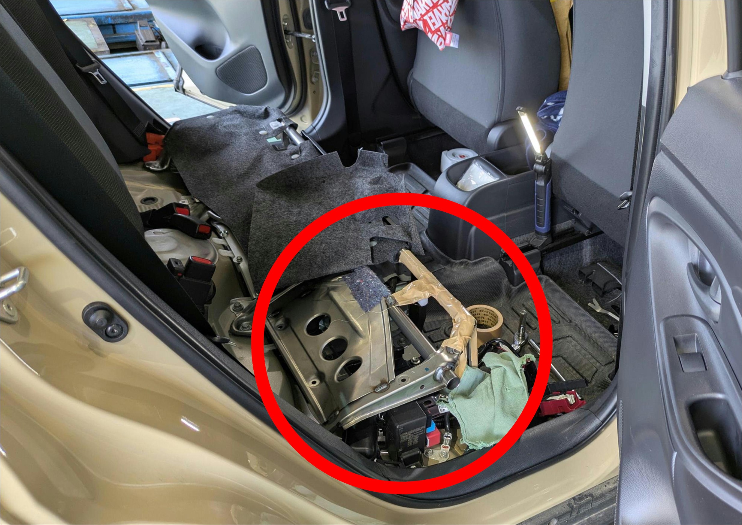 後部座席のシートの下!!