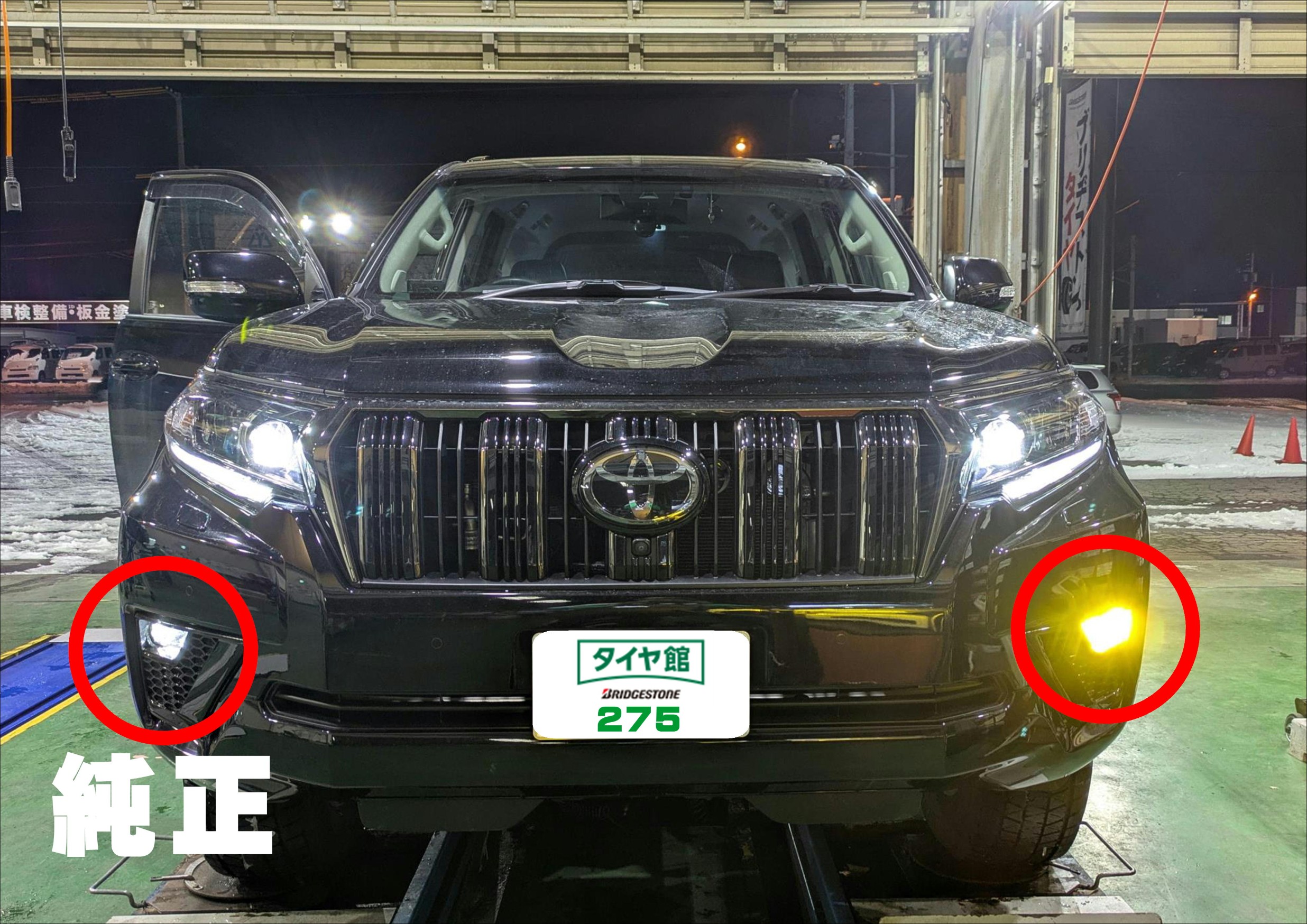 150プラド後期のフォグランプは純正LEDでバルブ交換不可タイプです。