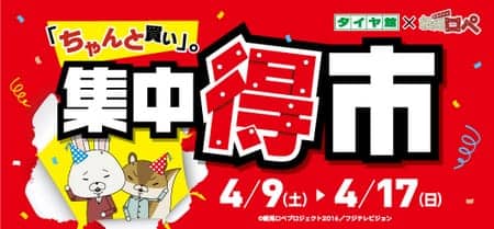 明日からは春のタイヤ祭り! ポスト 2016年4月8日 本日たくさんのお客様のご来店、ありがとうございます。明日、4/9(土)からは集中得市『春のタイヤ祭』を開催いたします!ブリヂストンタイヤを4本ご成約のお客様に、ボックスティッシュを最大15箱プレゼントなど、お買い得商品盛りだくあさんで、皆様のご来店をお待ちしております!