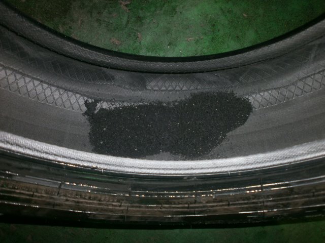 引きずりタイヤの内部です↓(こすれてゴムの粉がたまっています)