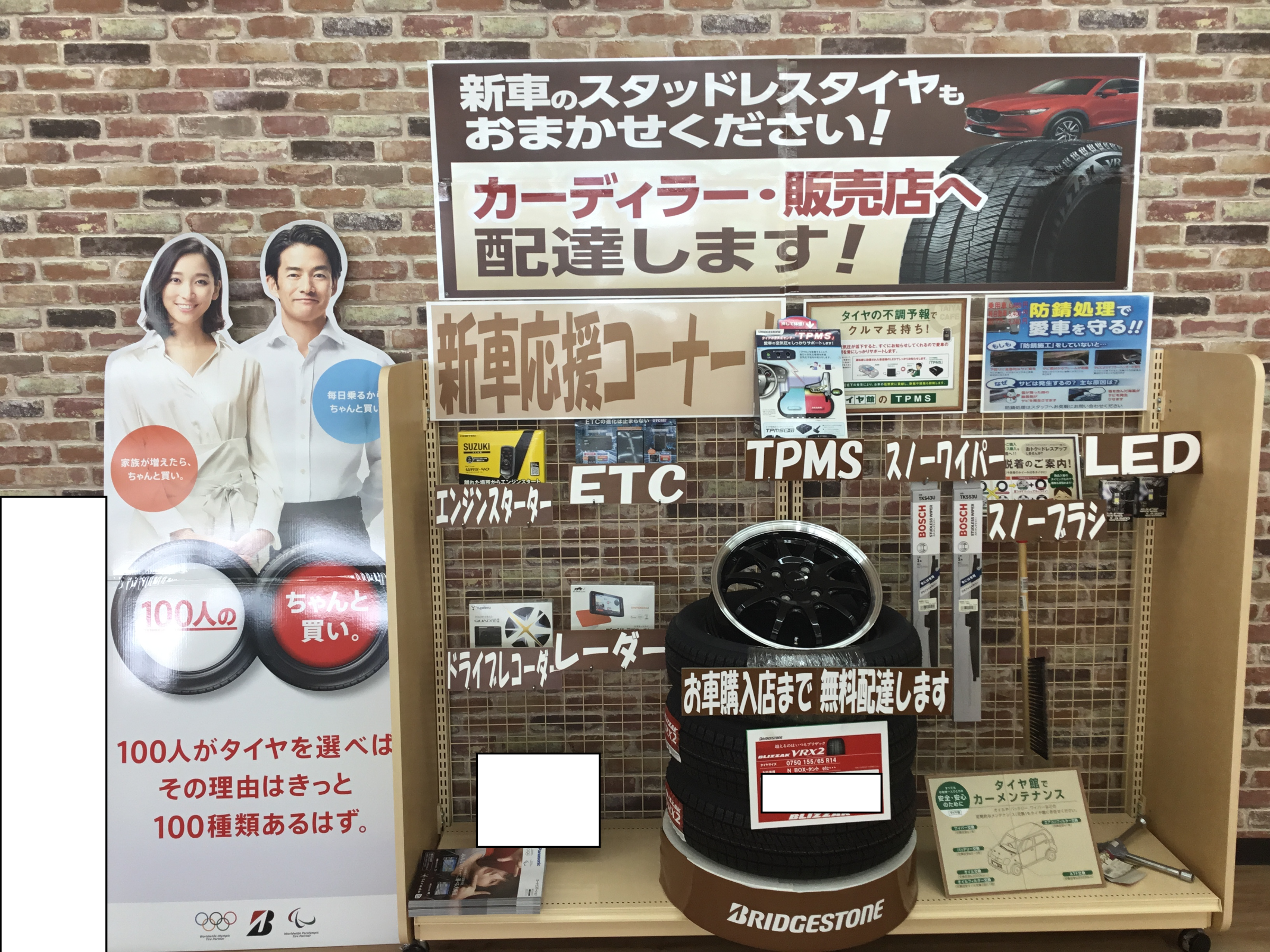新車購入時に必要なスタッドレスやその他用品をまとめて展示しています!!