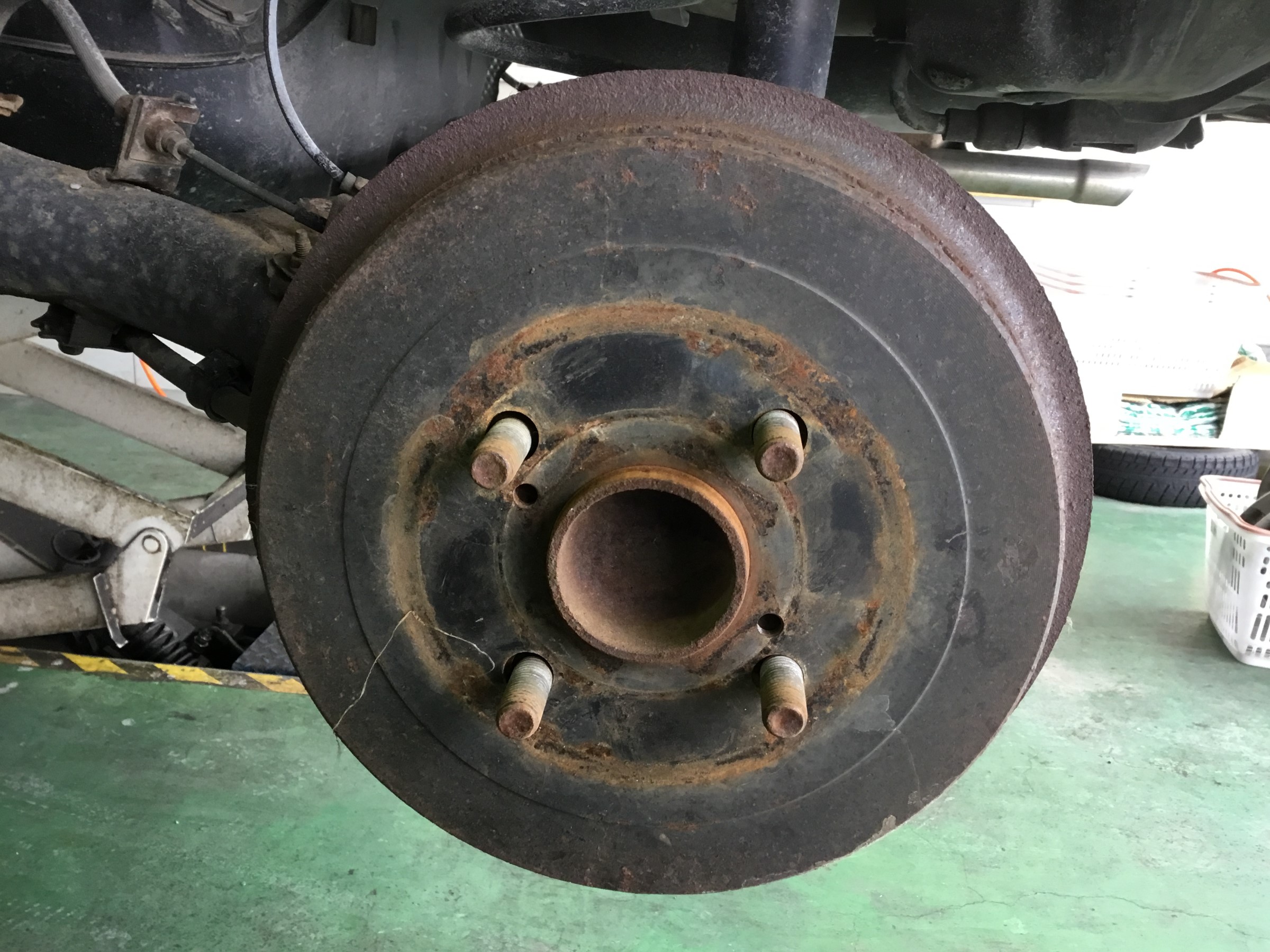 錆びている部分がホイールが当たっている部分になります。
