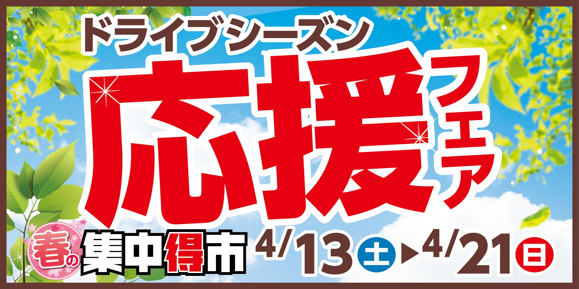 集中得市開催中! ポスト 2019年4月13日 暖かい日も多くなってきましたが、タイヤの点検・準備はお済みですか?当店ではお客様の“安全で快適なカーライフ”をお手伝いするべく、『春の集中得市☆ドライブシーズン応援フェア』を開催致します!!夏タイヤはもちろん、スタッドレスタイヤも売り尽くしセールを開催中です☆増税前に是非ご検討ください!!皆様のご来店を心よりお待ちしております\(^^)/