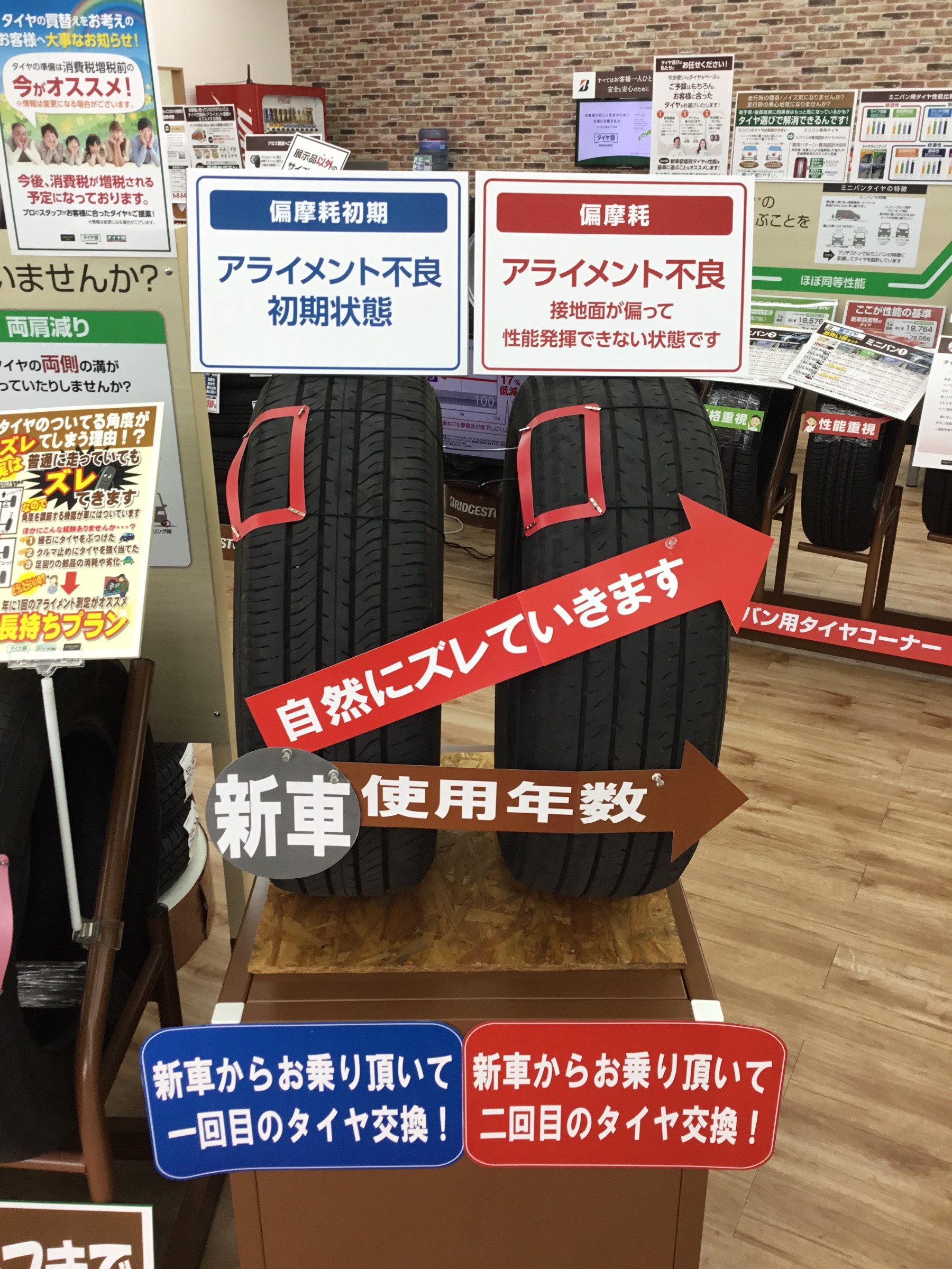 ずれていくタイヤの角度を正すアライメント ポスト 2019年6月30日 皆さんこんにちは! 本日もたくさんのご利用ありがとうございます!! 今日は当店のぜひ見ていただきたい展示です! アライメントは乗っているうちに自然にずれていってしまうというのを 分かりやすく展示しております。 ぜひスタッフにお問い合わせください!! 担当:ごかん