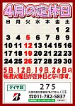こんにちは! 『タイヤ館275』です。 いよいよ4月です! ~~~『定休日のお知らせ』~~~ 4月の定休日は毎週火曜日、 5日・12日・19日・26日となっております。 ご予約やご来店の際は ご確認のほど宜しくお願い致します。 今月も、皆様のご来店お待ちしてマース!