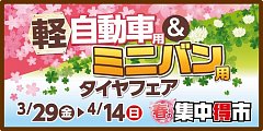 皆さんこんにちは! 本日もたくさんのご利用ありがとうございます!! タイヤ館では本日から春の集中得市が開催中です!! ブリヂストンではそれぞれのお車の特性に対応した専用設計のタイヤを取り扱っており 今多く普及している軽自動車用、ミニバン用タイヤフェアも同時開催! ホイールセットでの...