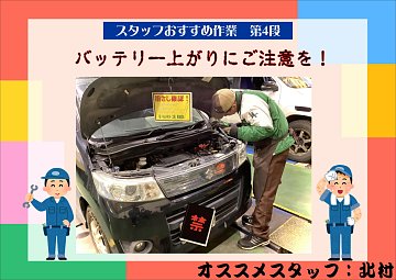 こんにちは! タイヤ館275です! これからのお盆にむけて注意喚起です! 車のバッテリーは最後にいつ交換したか覚えていますか? 車のバッテリー上がりは冬に多いイメージがあるかもですが、 実は夏も全然あります! 特に今日のような暑い時期になると ボンネット内も熱くなります。 するとバッテリ...