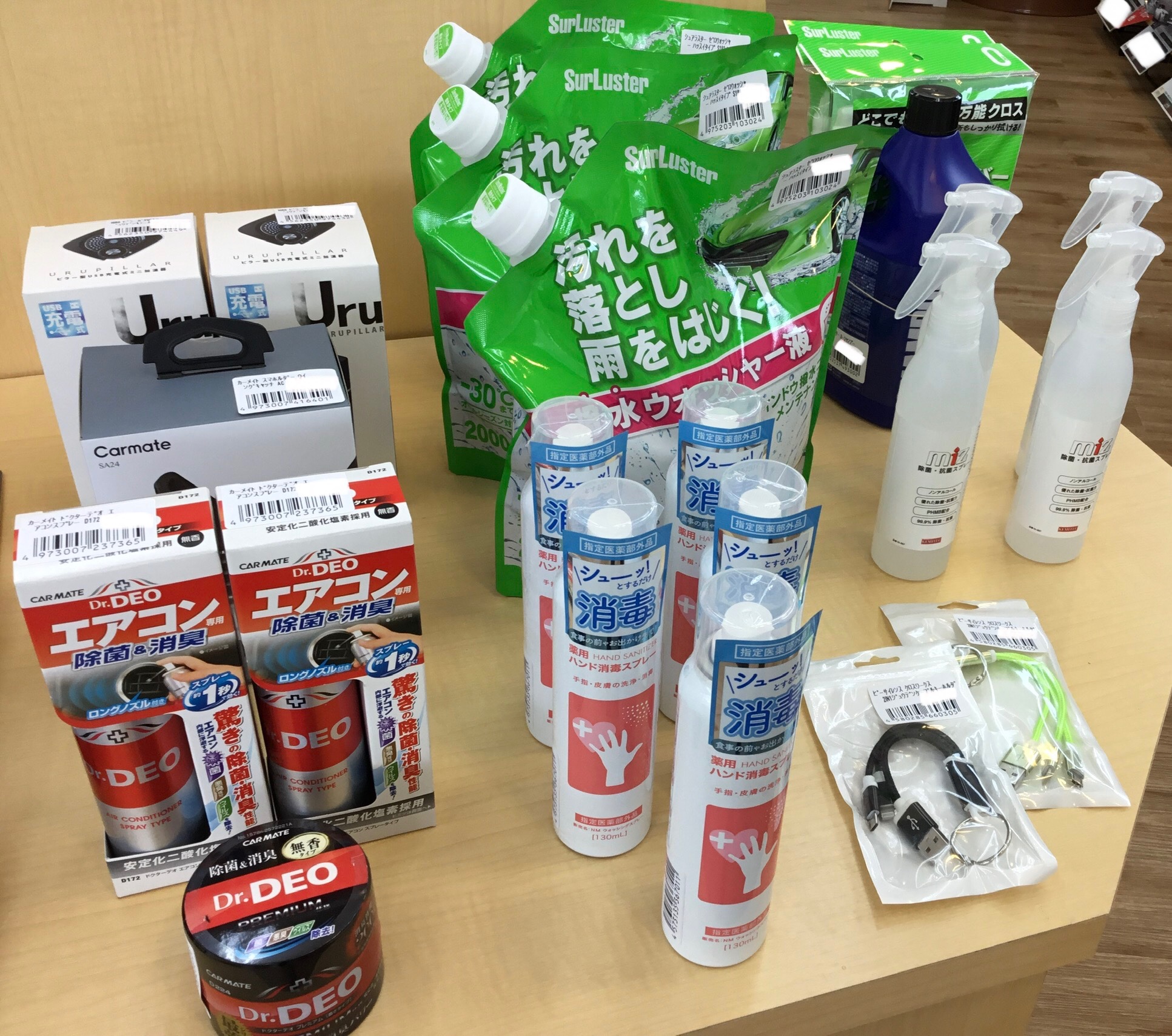 カーシャンプーや撥水ウォッシャー液、消毒・消臭アイテムなどがお買い得です!!
