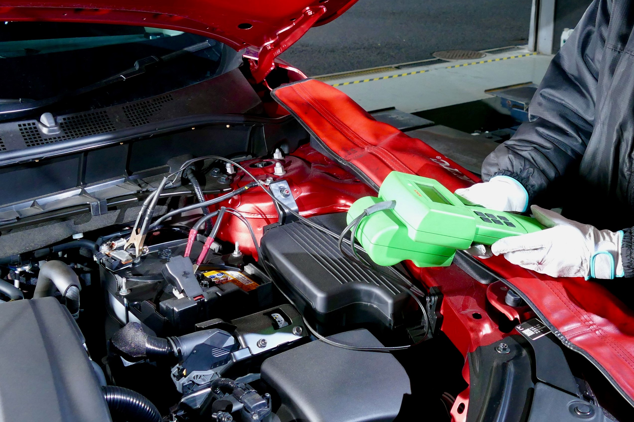 バッテリーは交換後から性能低下がはじまり、寿命末期に突然性能がダウンします。そのためクルマを使用するなかで性能低下の兆候を捉えるのは難しく、交換のタイミングを判断するのは容易ではありません。そこで当店では、最新の専用機材(バッテリーチェッカー)を使用して点検を行います。バッテリーの交換目安は2~3年ですが、おクルマの使い方や使用環境などによっても変わってきますので、ぜひ定期的に点検を行ってください。なかでも「バッテリーって、いつ交換したっけ?」という方は、早めに点検してくださいね。なお、当店ではメンテナンス安全点検として、バッテリー点検のほか、オイル点検、ワイパーブレード点検なども無料で実施していますので、お気軽にご利用ください。