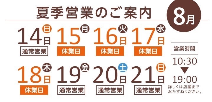 8月19日(金)からは通常営業となります。