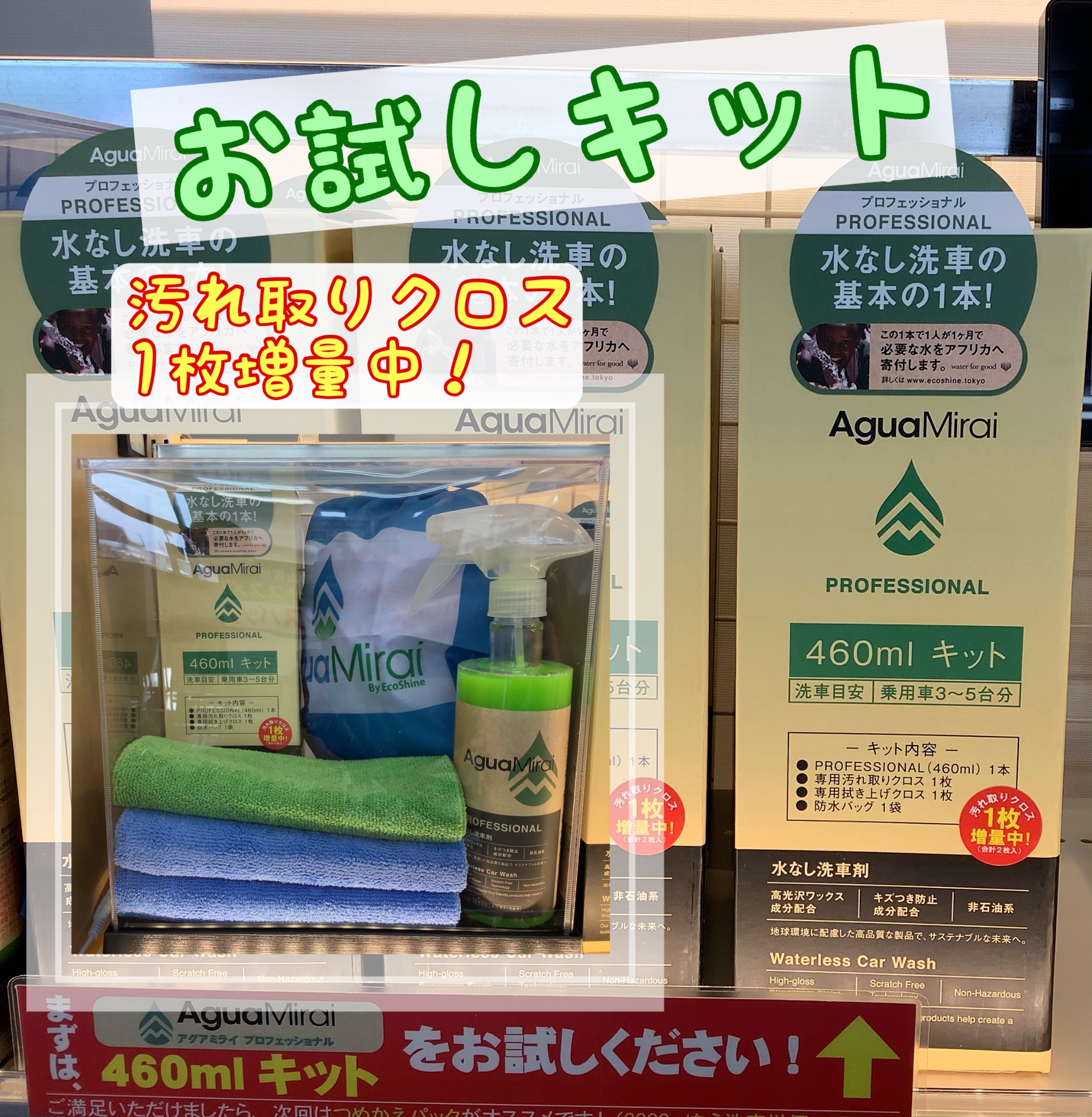 まずは、専用クロスと防水バッグがついた"お試しキット"がオススメ!