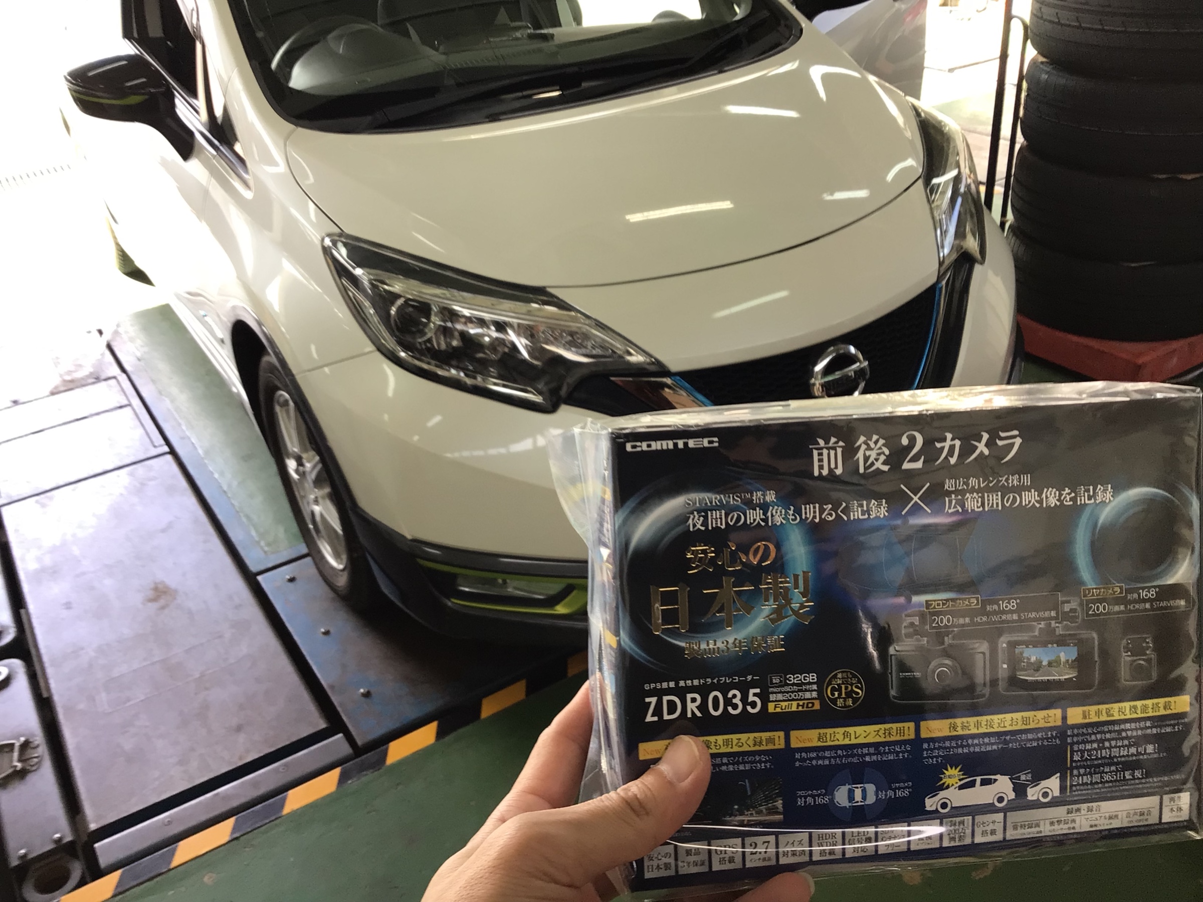 日産ノートeパワー ドラレコ コムテックZDR035取付け