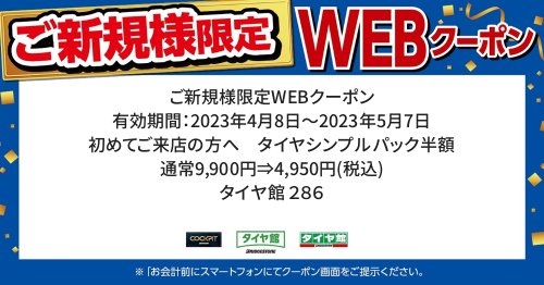 タイヤ購入で使えるお得なタイヤパック半額クーポンございます!