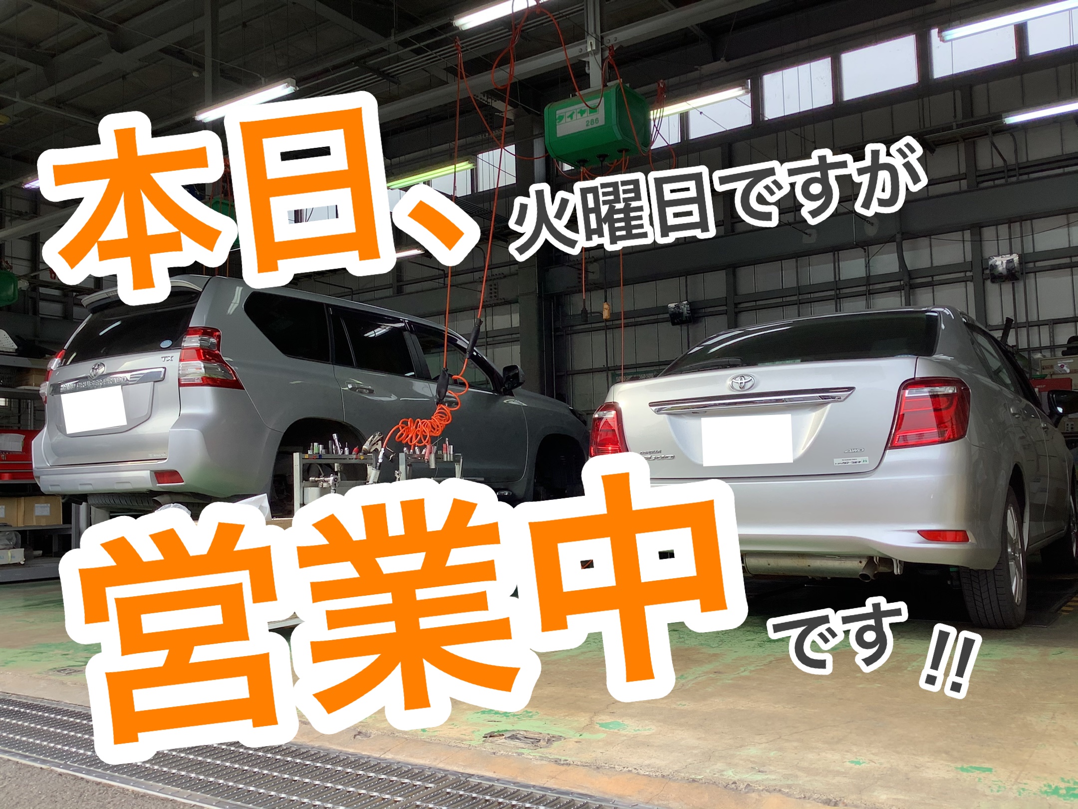 本日は火曜日ですが、営業しております!