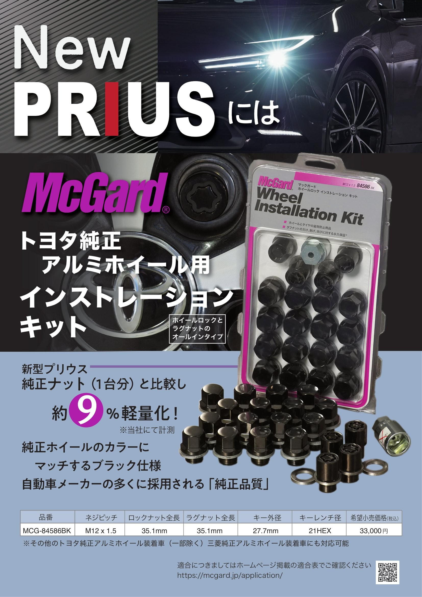 自動車メーカー各社に純正採用されており(もちろんブリヂストンでも)品質はお墨付きのマックガード「インストレーションキット」、目立つ商品ではないですが、セキュリティ性能も高い商品ですので、ぜひご検討ください。
