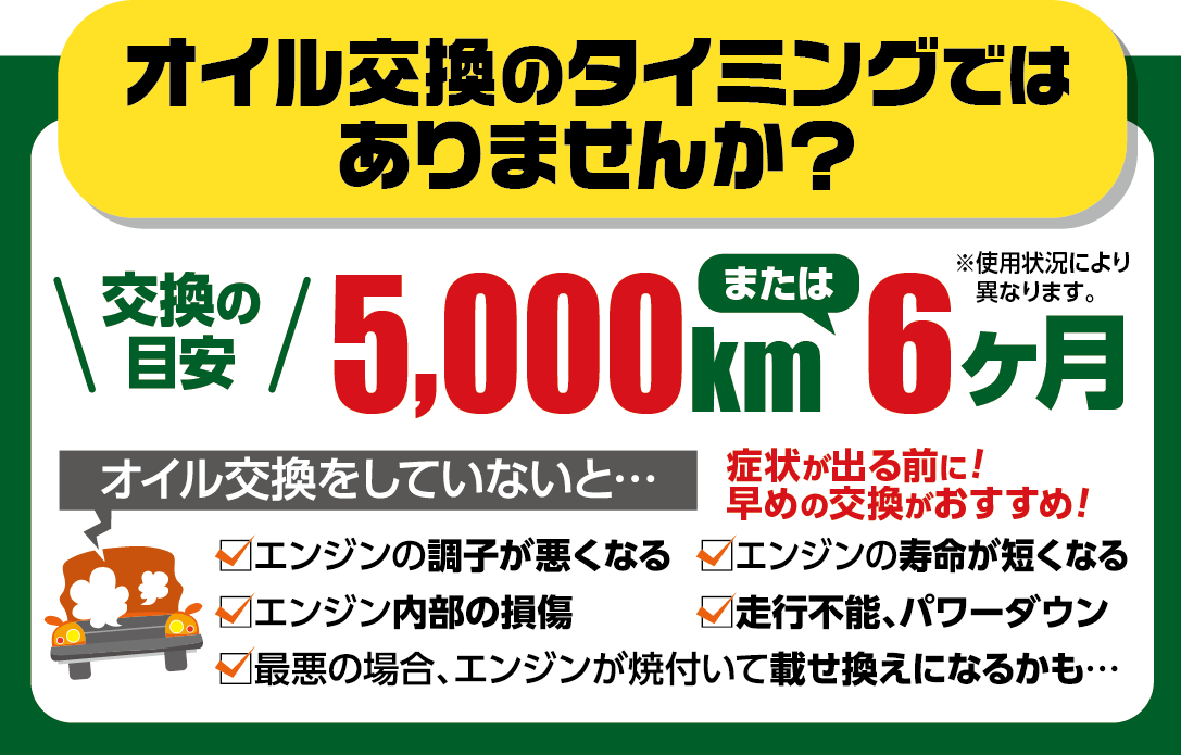 トラブルなく好調を維持したいなら、定期的にエンジンオイル交換を!!