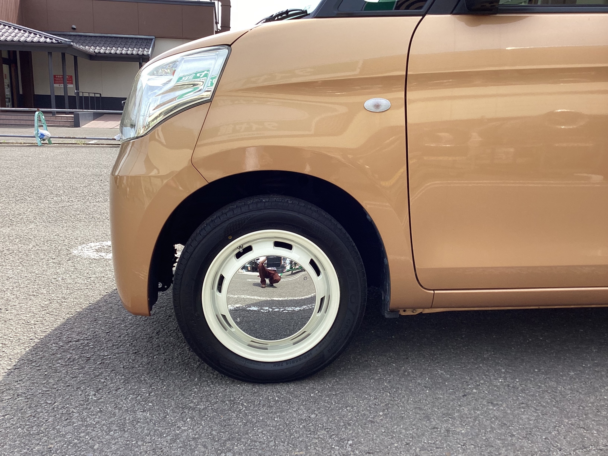 うーむ、かわいい。オレンジのボディに白いアルミホイール、そしてムーンキャップ。
