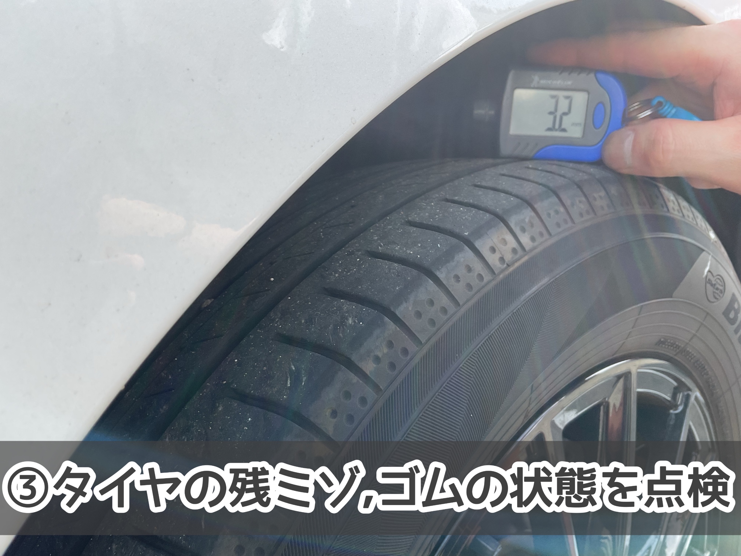 ③残ミゾ、ゴムの状態のタイヤ点検!