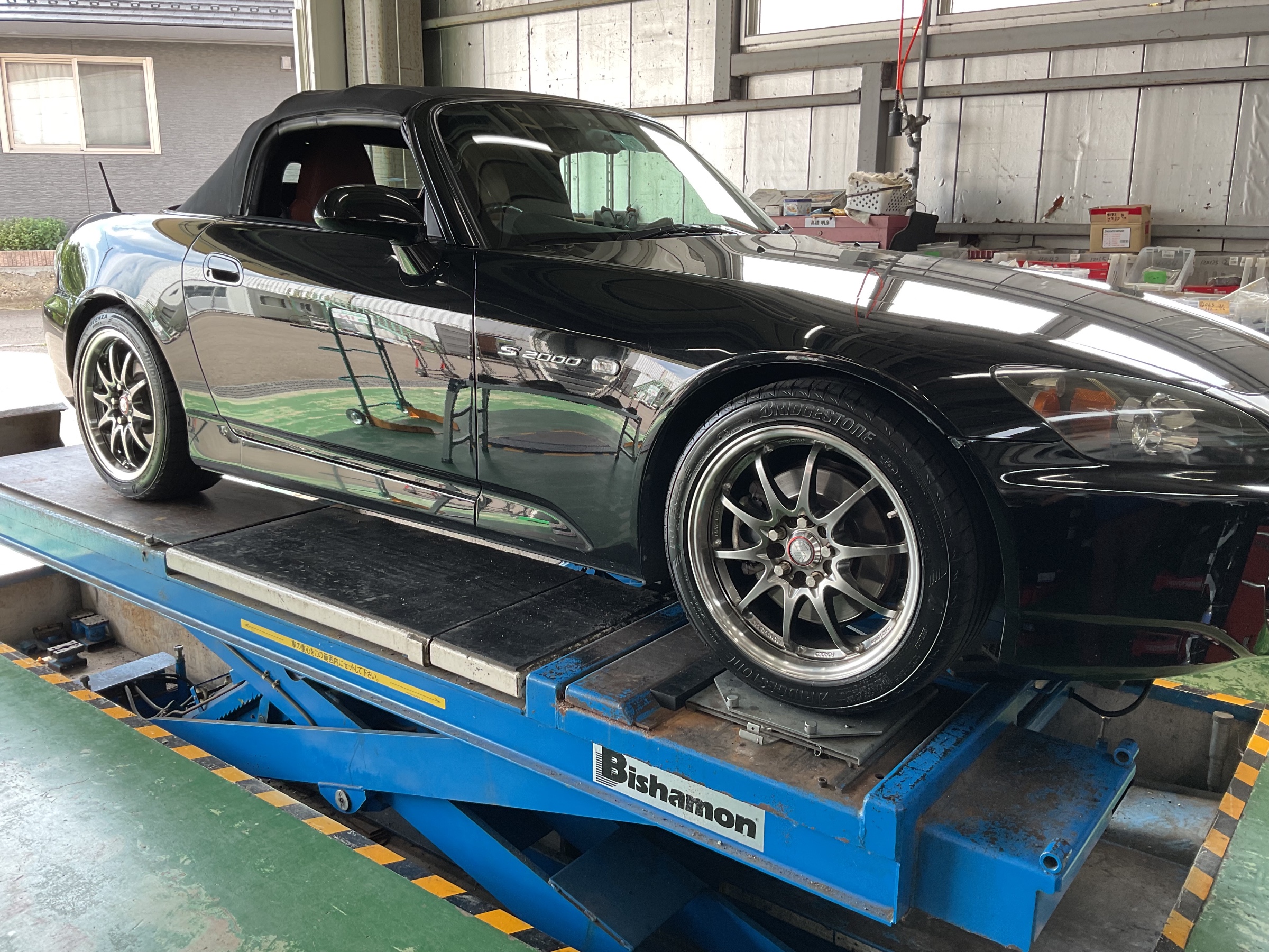さて本日は名車S2000のタイヤ交換です。取り付けたタイヤはブリヂストンポテンザS007A!