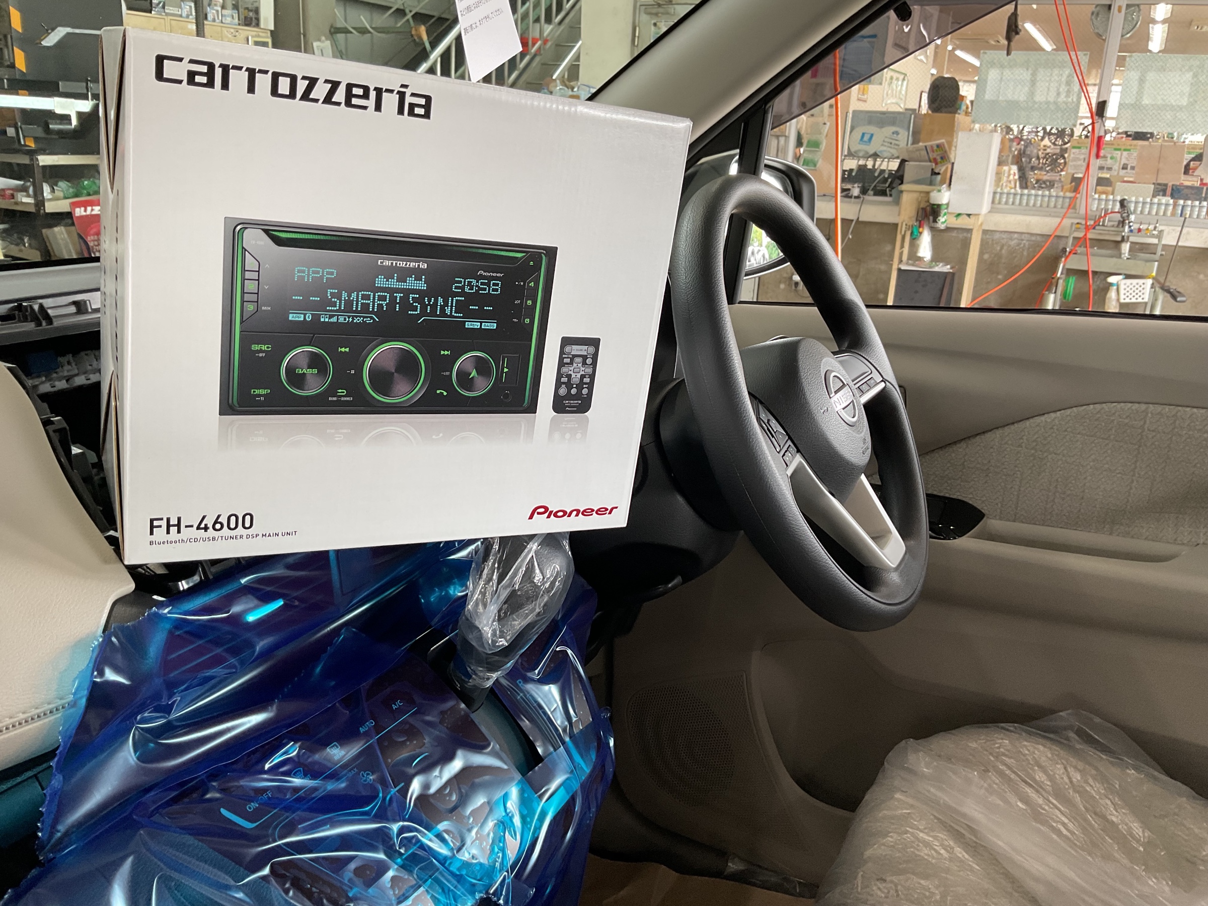 さて本日は日産デイズにオーディオ取り付けです。CDとラジオがご希望でしたのでパイオニアFH−4600をチョイス。傷が付かないようにしっかり養生しての作業です。