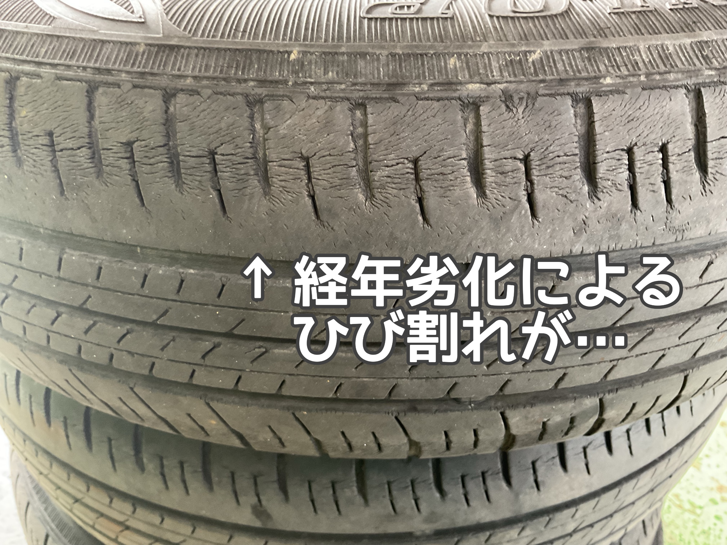 お車もタイヤも8年目というところで、タイヤにひび割れが起きてしまっておりました。
