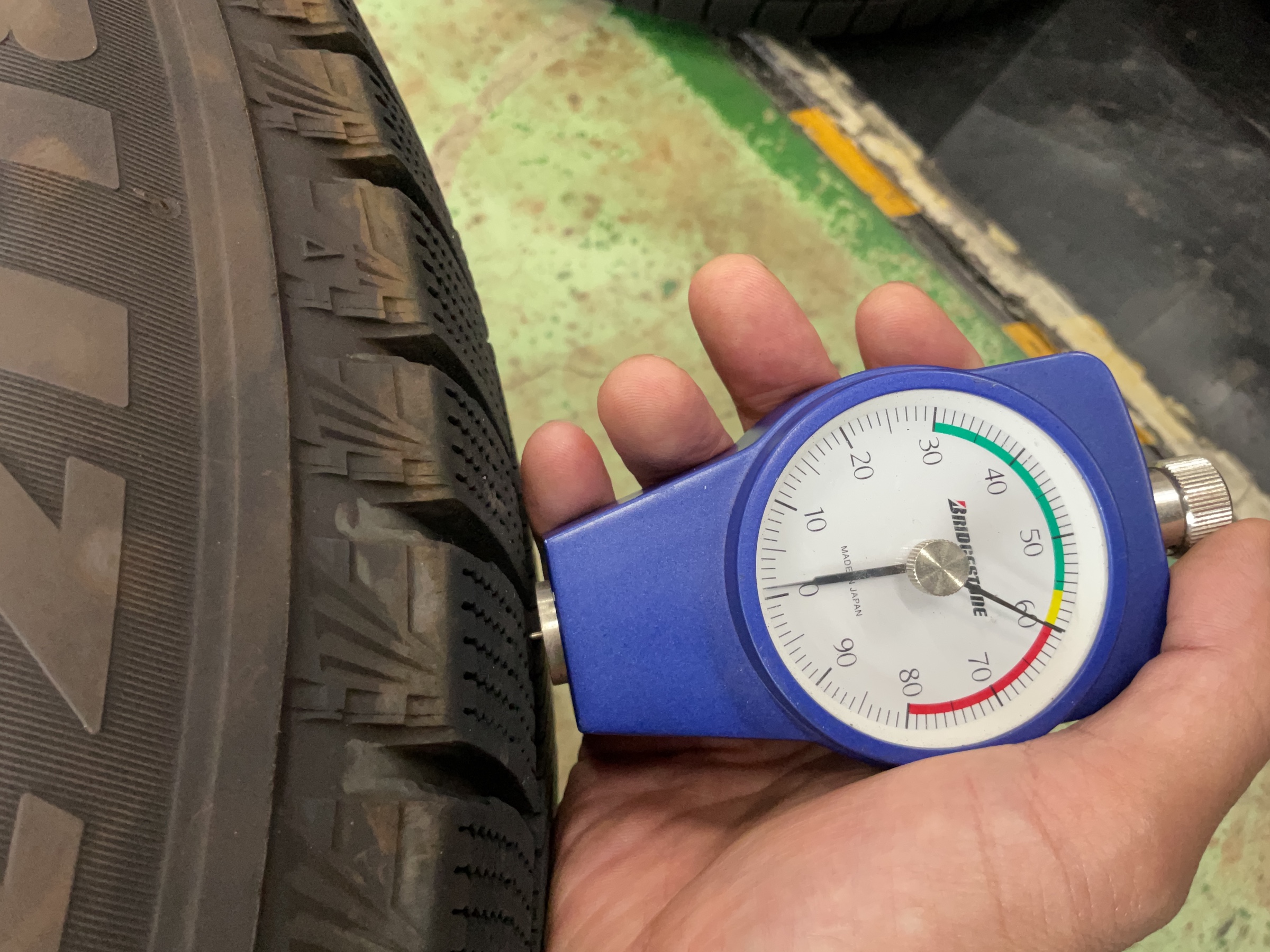 4シーズンの使用で専用の器具で硬度を調べるとタイヤの硬化が進んでいる状態でした。