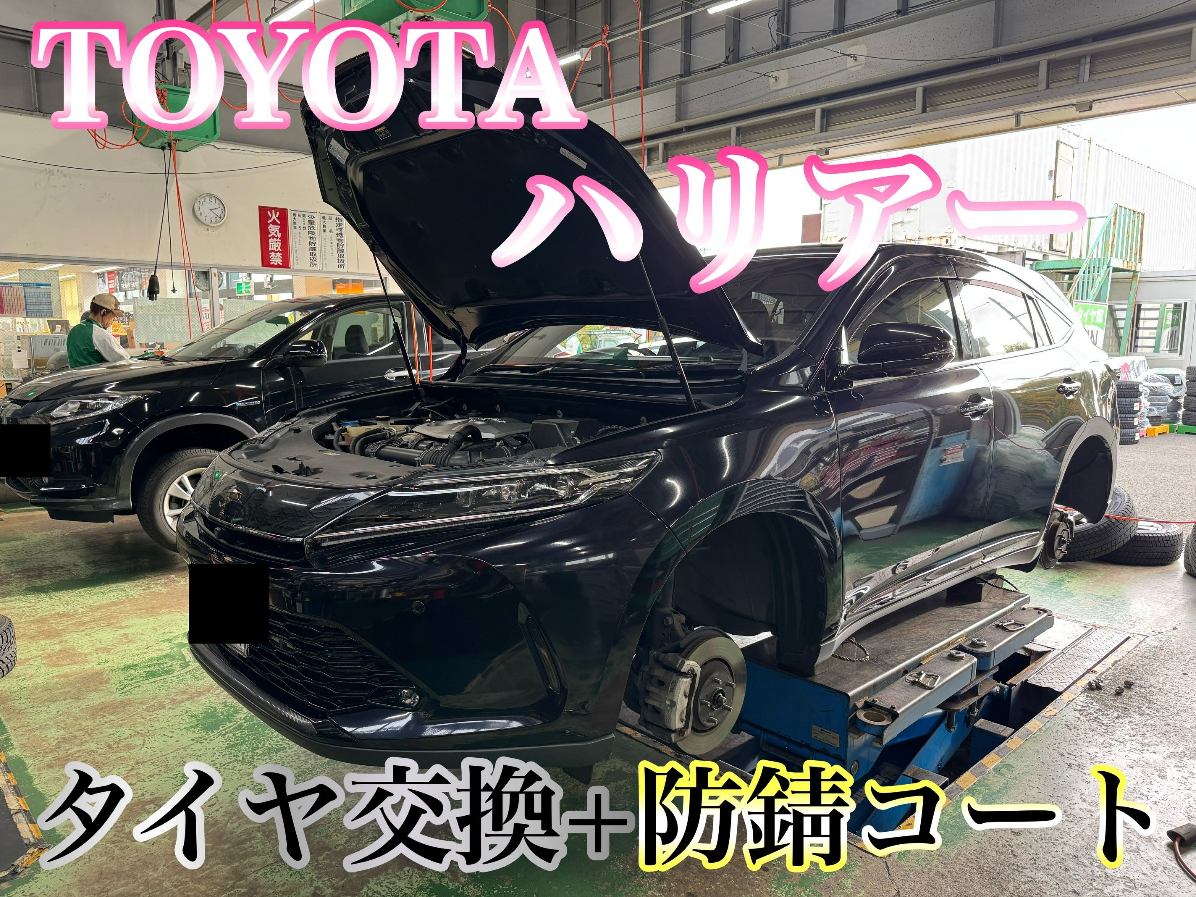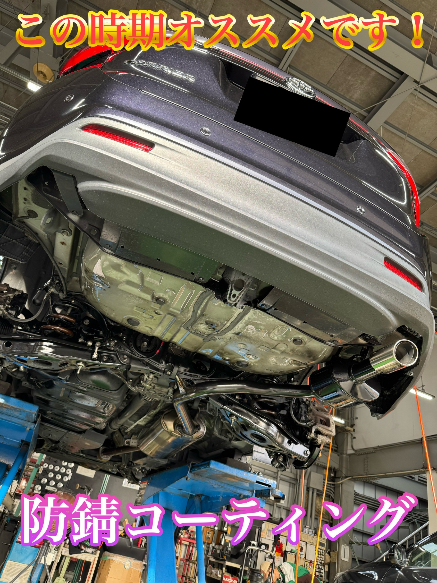 ハリアーのスタッドレスタイヤへの交換と同時に『防錆コーティング』をご用命いただきました!