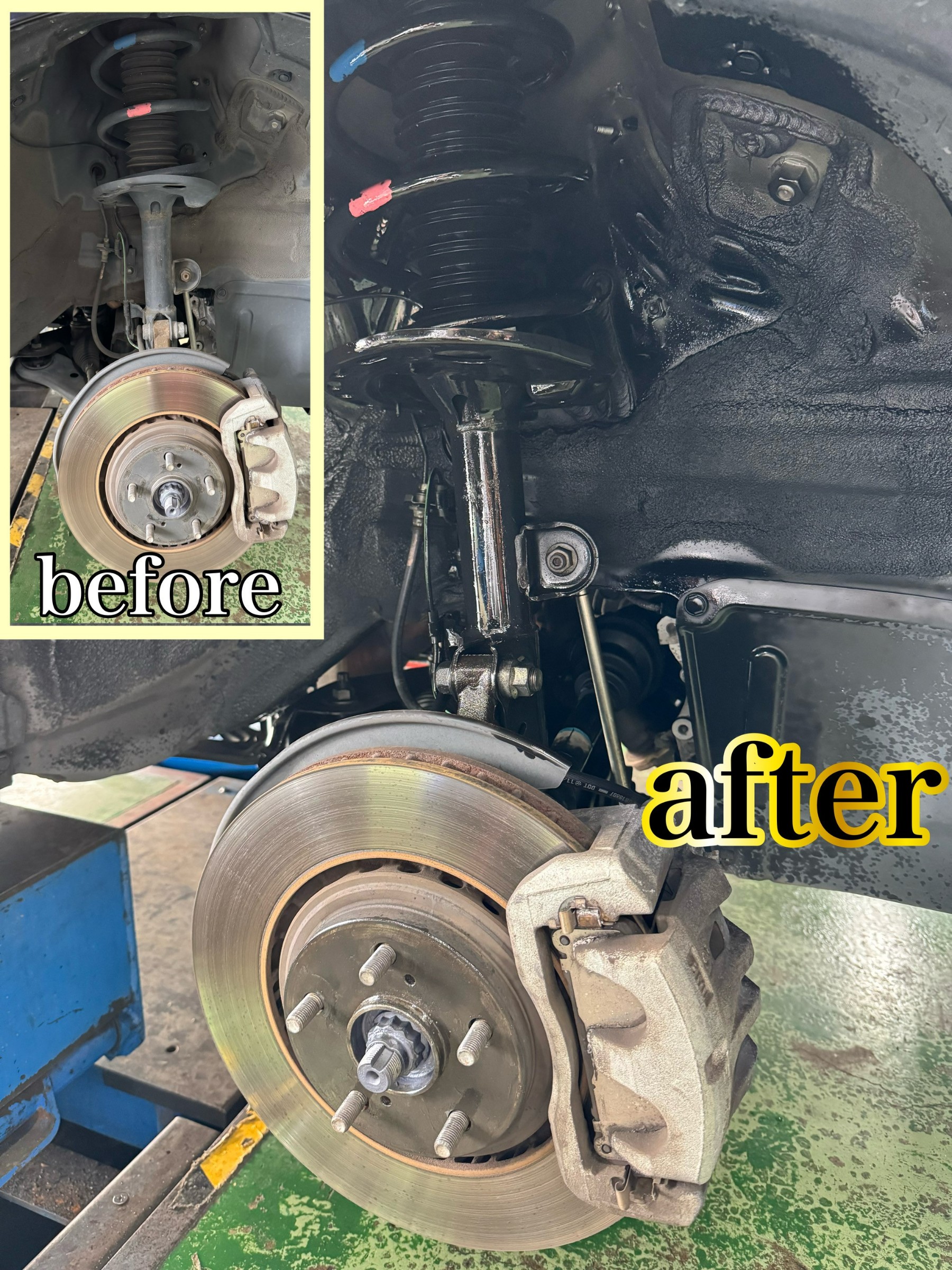 タイヤハウス内や足回り、コーティング出来うるすべての金属部分に防錆処理をさせていただきました(^^)/