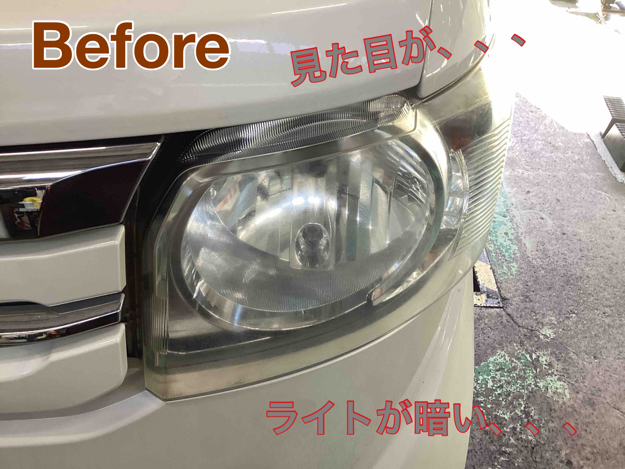 曇ってくると見た目も悪くなるのもそうですが夜間の走行でもライトが暗くなるので怖いですよね。