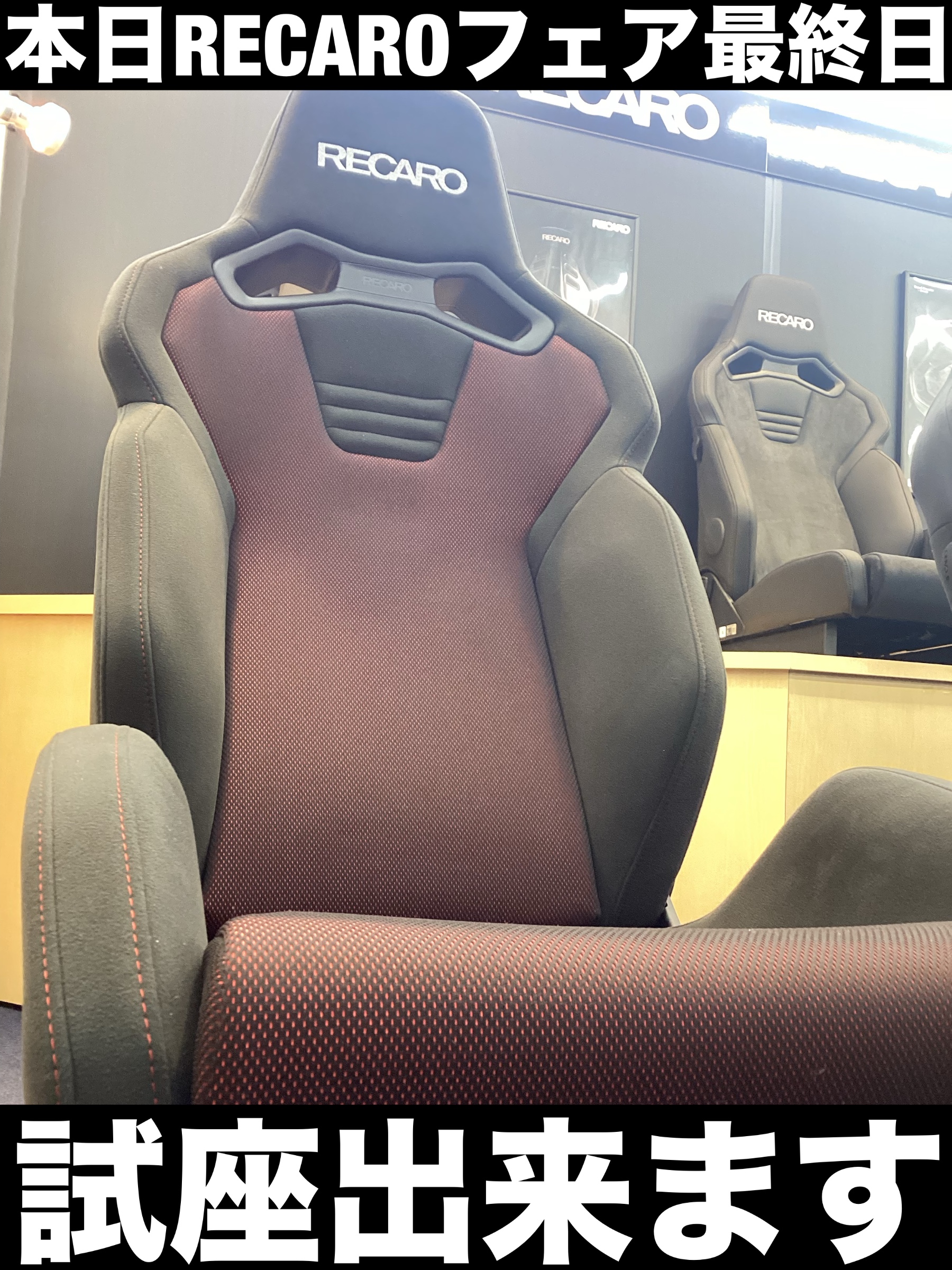 タイヤ館286ではRECAROフェアを開催しておりますが本日「最終日」でございます‼︎