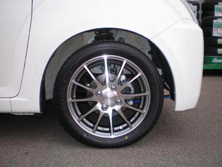 本日はアルトに14インチ装着、何と2インチアップ!!アルミはブリヂストンお勧めのエコフォルム、タイヤはもちろんエコピア!黄金セットです。