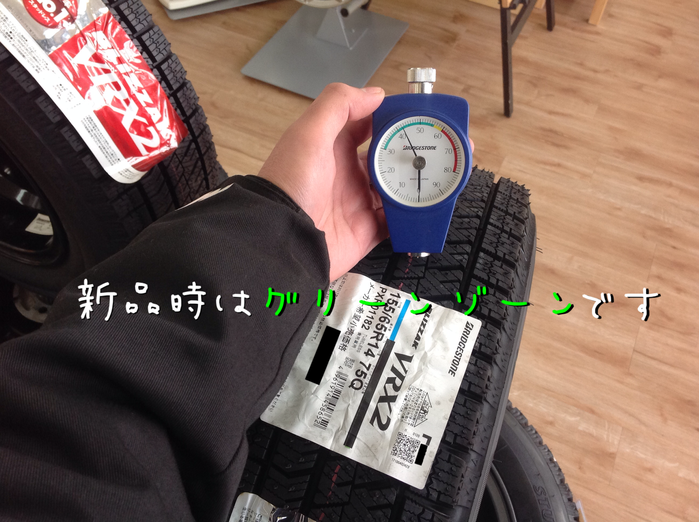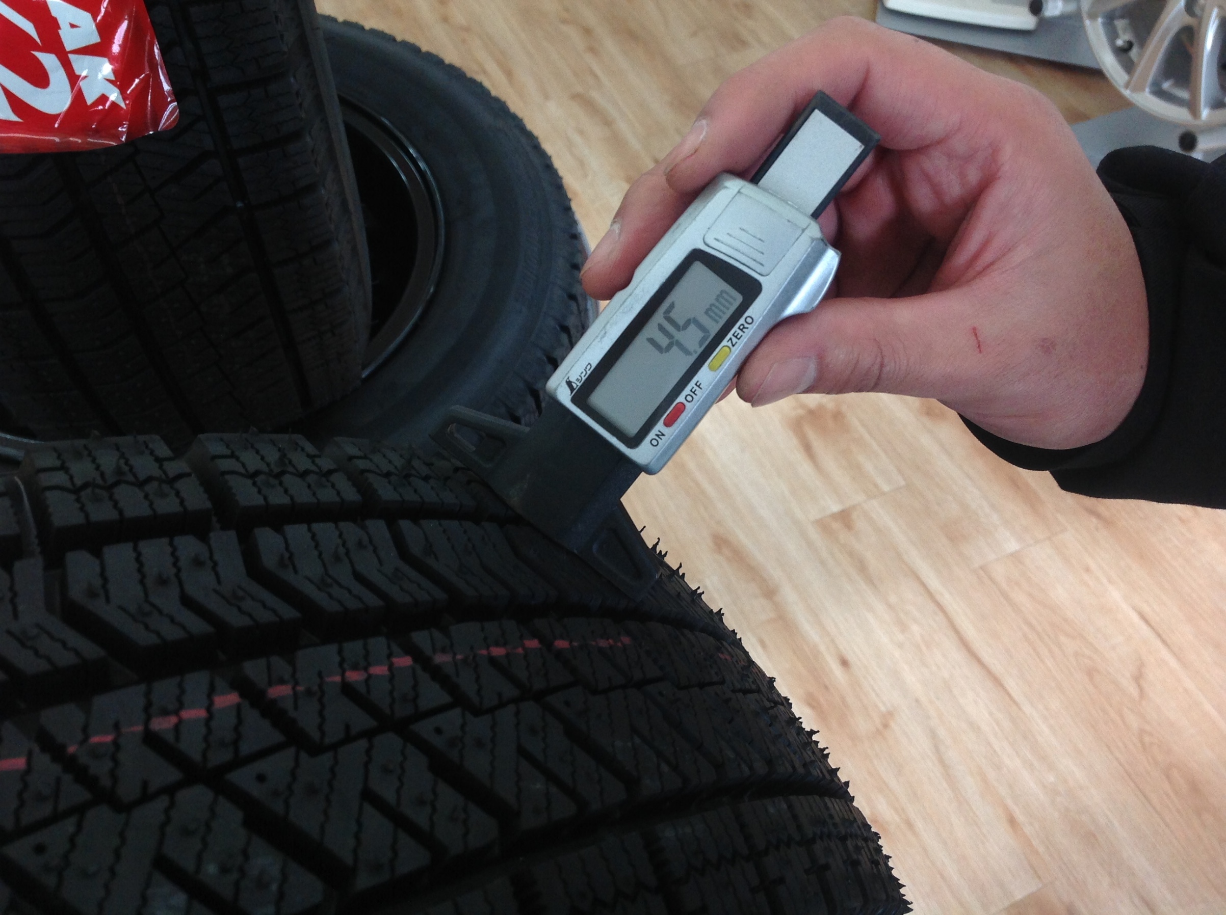 当店ではスタッドレスの溝、柔らかさを専門の器具でしっかり点検!