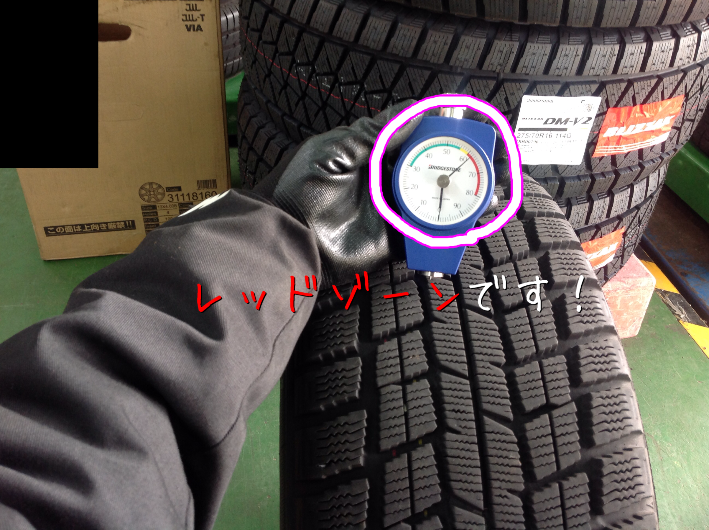 緑、黄色、赤と色別に分かれていて、赤色になると冬タイヤとして性能が発揮できないタイヤとなります。