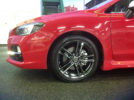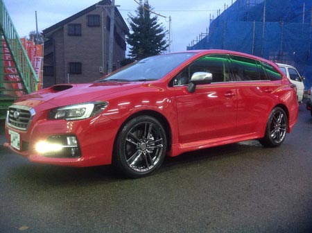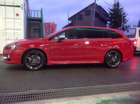 真っ赤なレヴォーグ!!ハッとする色ですね!そのボディ色にマッチした今回のアルミ、バルミナS5のダークスパッタリング!その見る角度によって雰囲気が変わる独特のカラー、デザインが言い意味で派手なレヴォーグ、真っ赤なボディに本当にマッチしました!