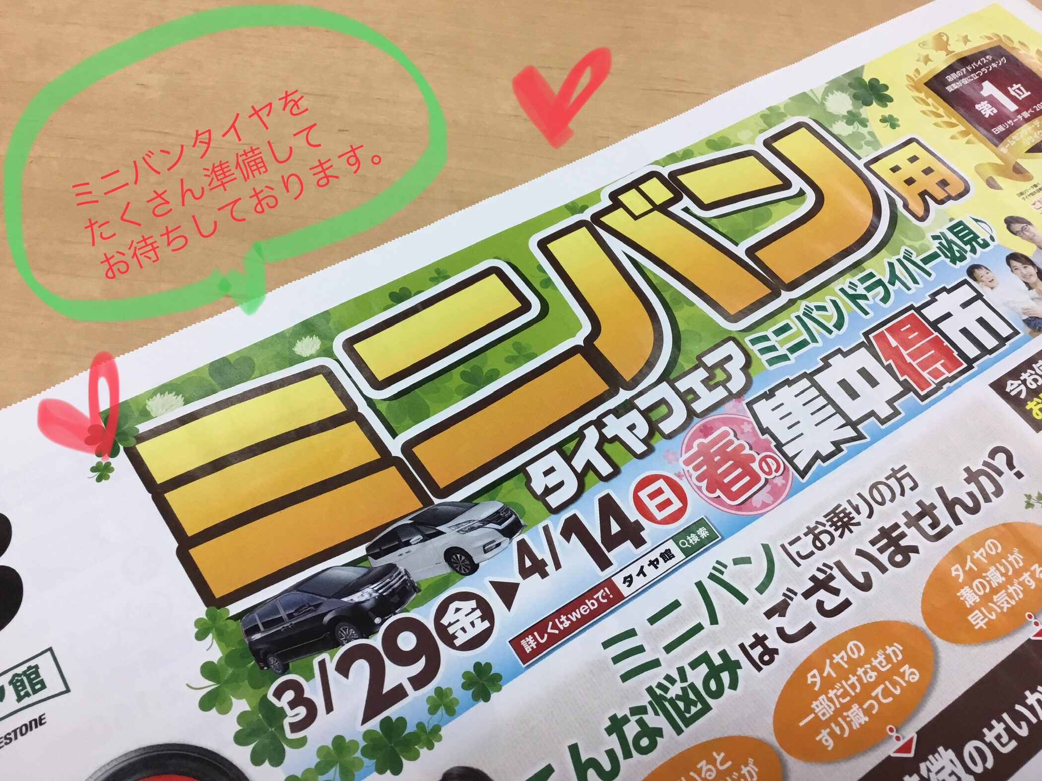3/29~4/14までミニバン用タイヤフェア行います(^^)