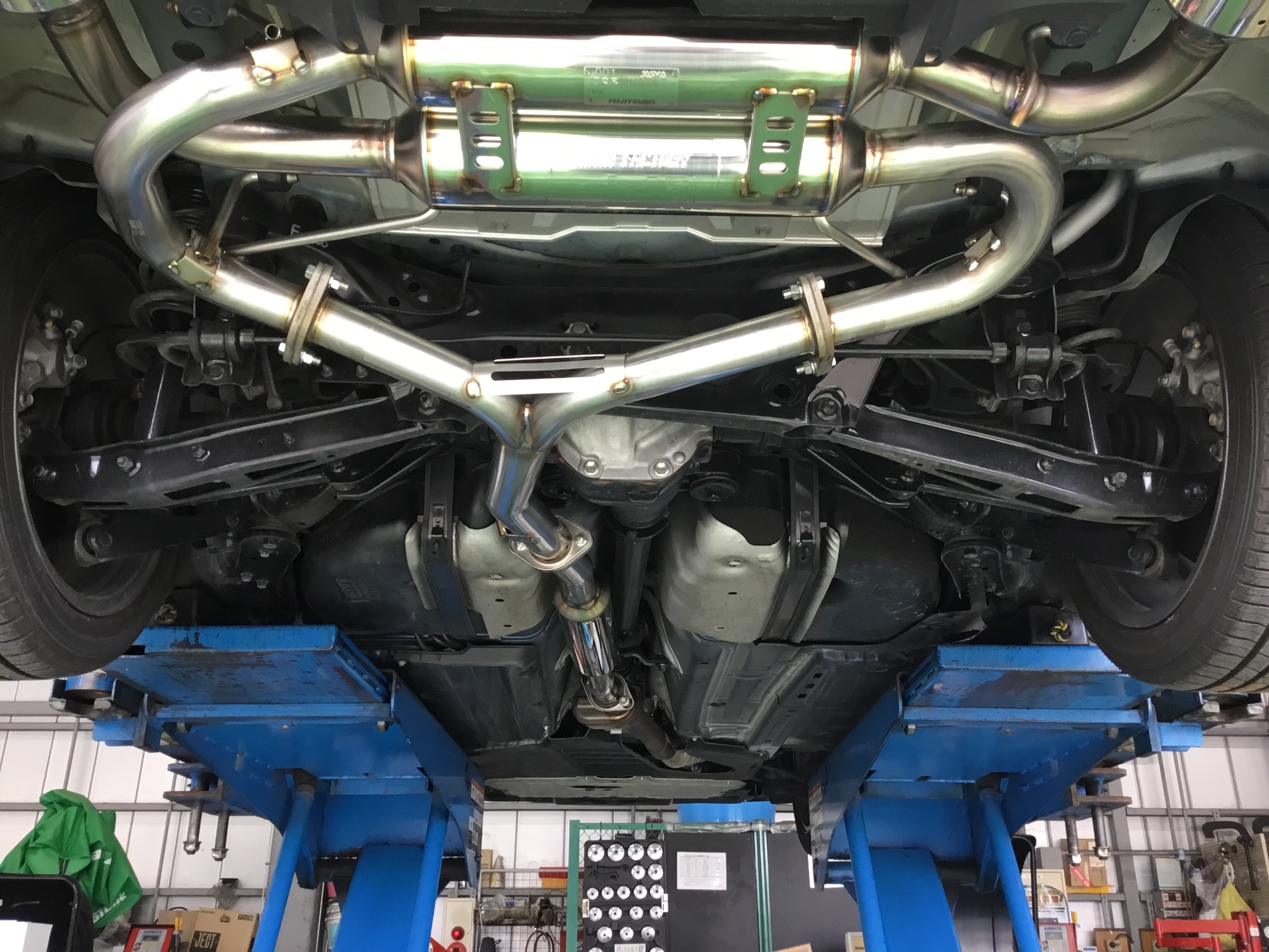 中間から二本に分かれ左右均等に排気圧がかかるように等長化されてます。