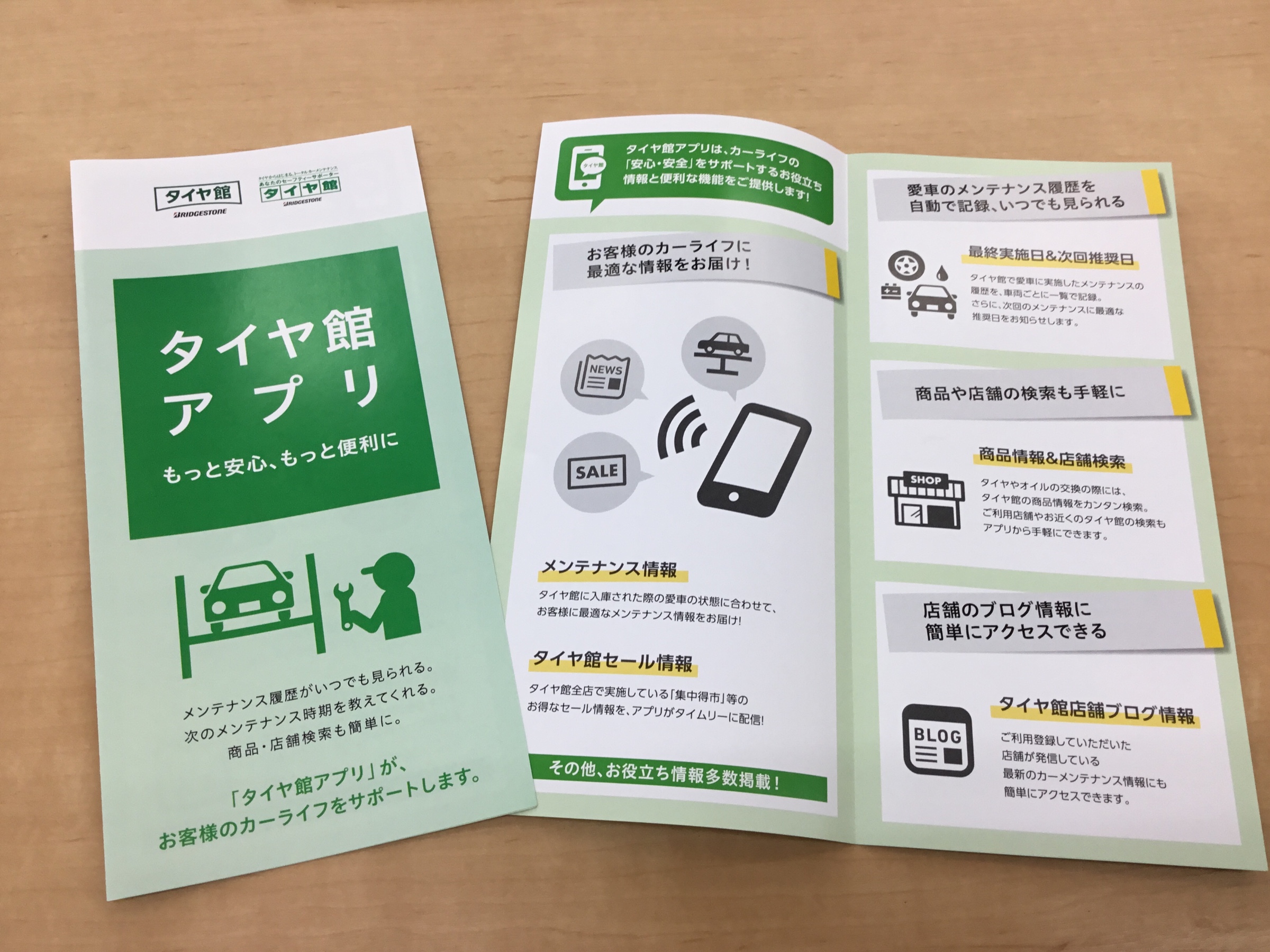 メンテナンス履歴、タイヤ館店舗検索、店舗ブログなどに簡単にアクセス出来ちゃいますよ!
