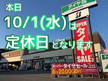 皆さまこんにちは、仙台市の長町エリアにありますタイヤ館286です! あっという間に10月になりましたね。 今月10月の定休日は 1日(水)、7日(火)、14日(火)、21日(火)、28日(火) となります。 【ピット休憩時間導入のお知らせ】 7月22日(火)より、12:00~13:00の間ピット休憩時間を導入させて頂い...