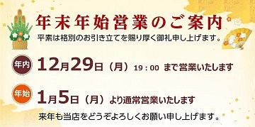 年末年始営業日のご案内