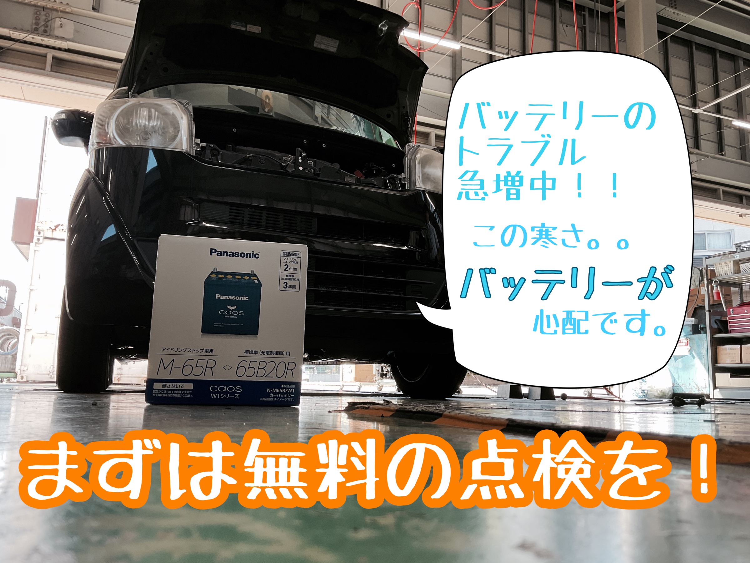 こんにちは、仙台市の長町エリアにあります、タイヤ館286です! 寒い日が続いてますので、 おでんと日本酒が欲しくなりますね。 さて、寒い日と言えば、 愛車のバッテリーの点検はしてますか? 最近、バッテリートラブルが増えています。 夏にたくさん使ったエアコン… 今は寒さが厳しくまたエアコン...