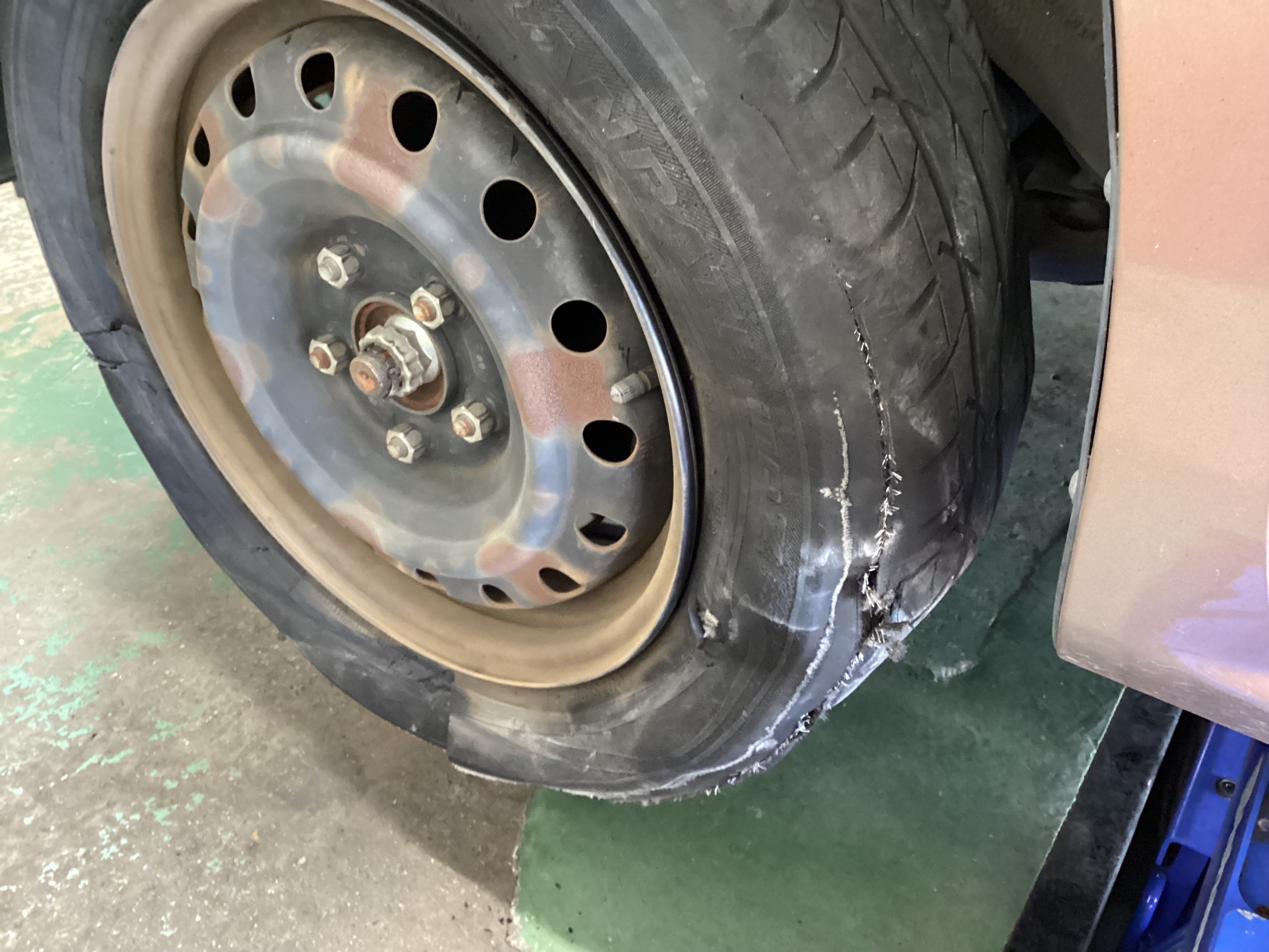 タイヤの交換時期なのに使用し続けてちょっとした振動でバーストしてしまう
