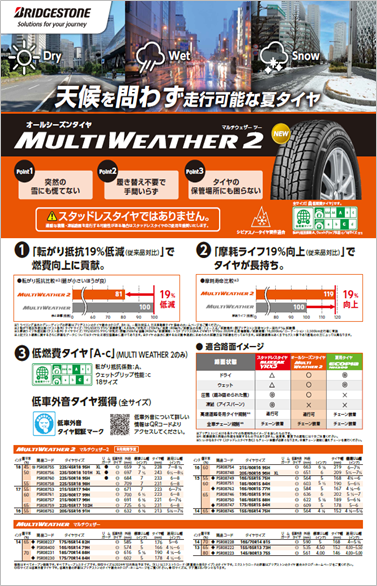 今回はブリヂストンのオールシーズンタイヤについてご紹介させていただきます。