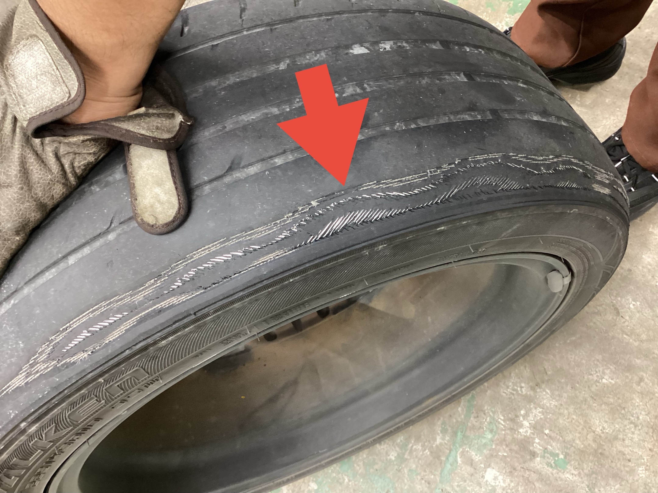 タイヤのカーカスと呼ばれる骨格部分が出ている状態Σ( ˙꒳˙ ;)