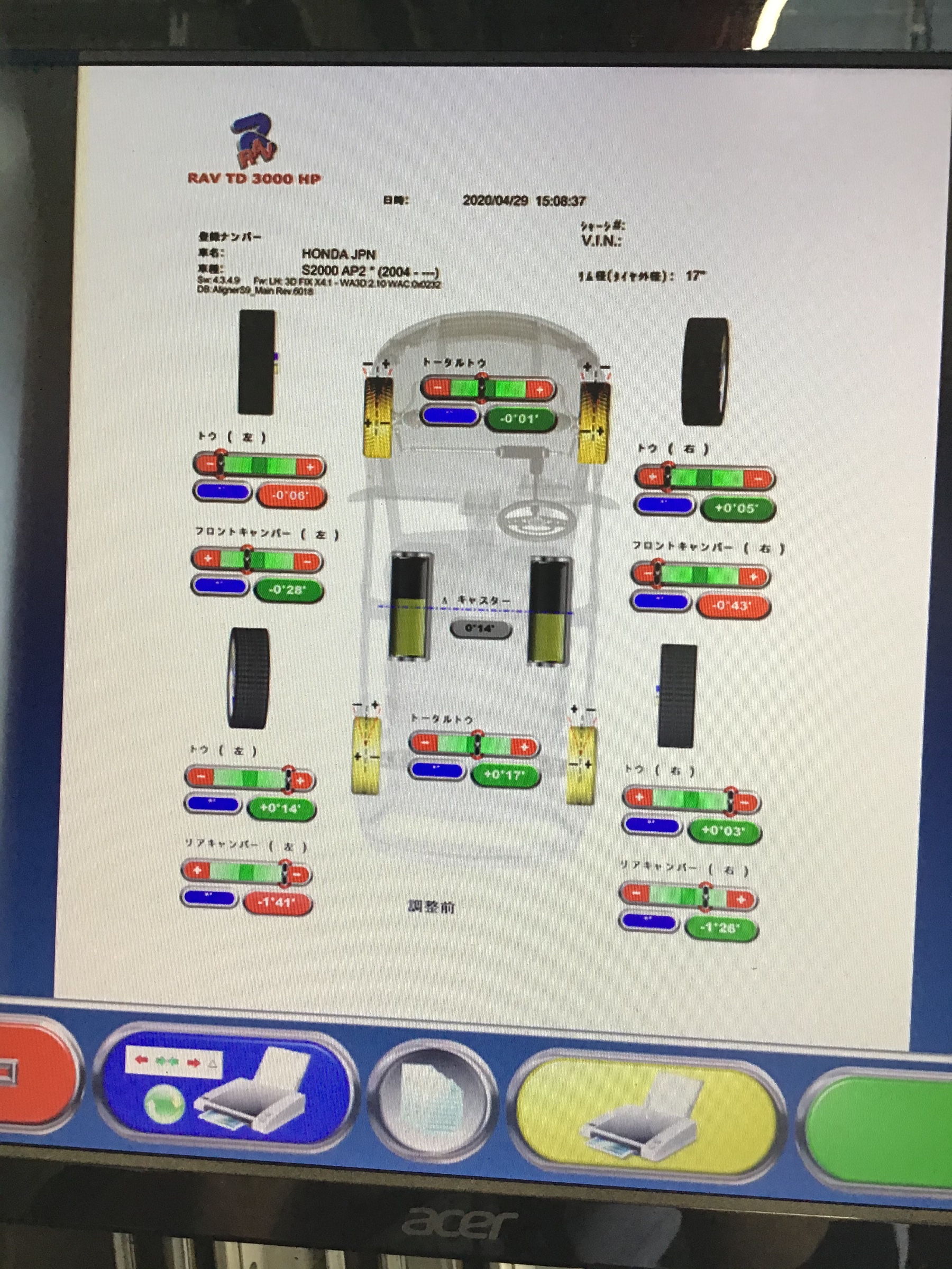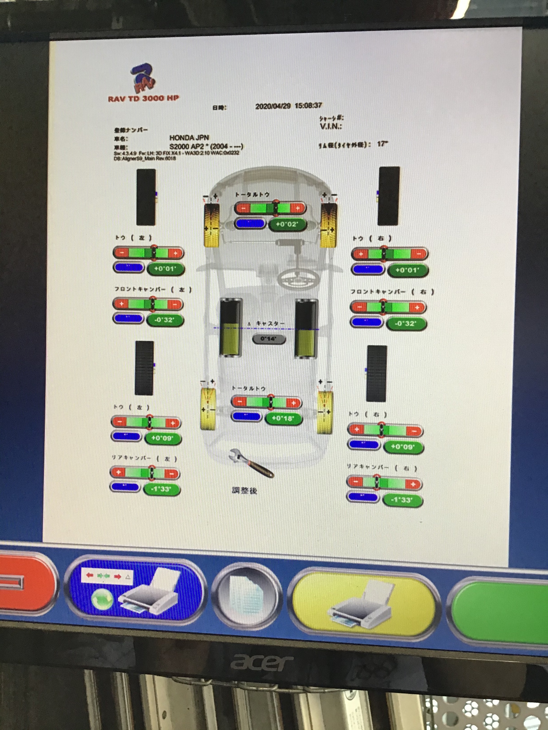 ホンダ・S2000は、前後のトゥー、キャンバーの計8箇所の調整が可能です(^。^)